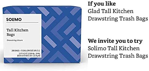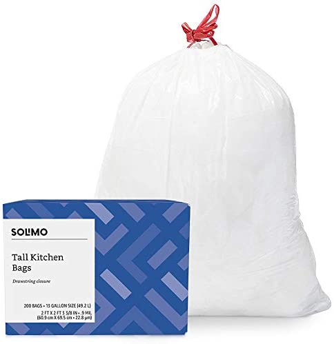 Amazon Brand – Solimo Tall Kitchen Drawstring Trash Bags, 13 Gallon, 200 Count