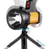 Outdoor Camping Flood Working Light Mode(With bracket);Straps Mode;Hand-held Mode:When you go camping and barbecue,our camping flashlight can perfectly set your hands free.When you walk a dog,our shoulder trap can prevent rechargeable spotlight from falling.