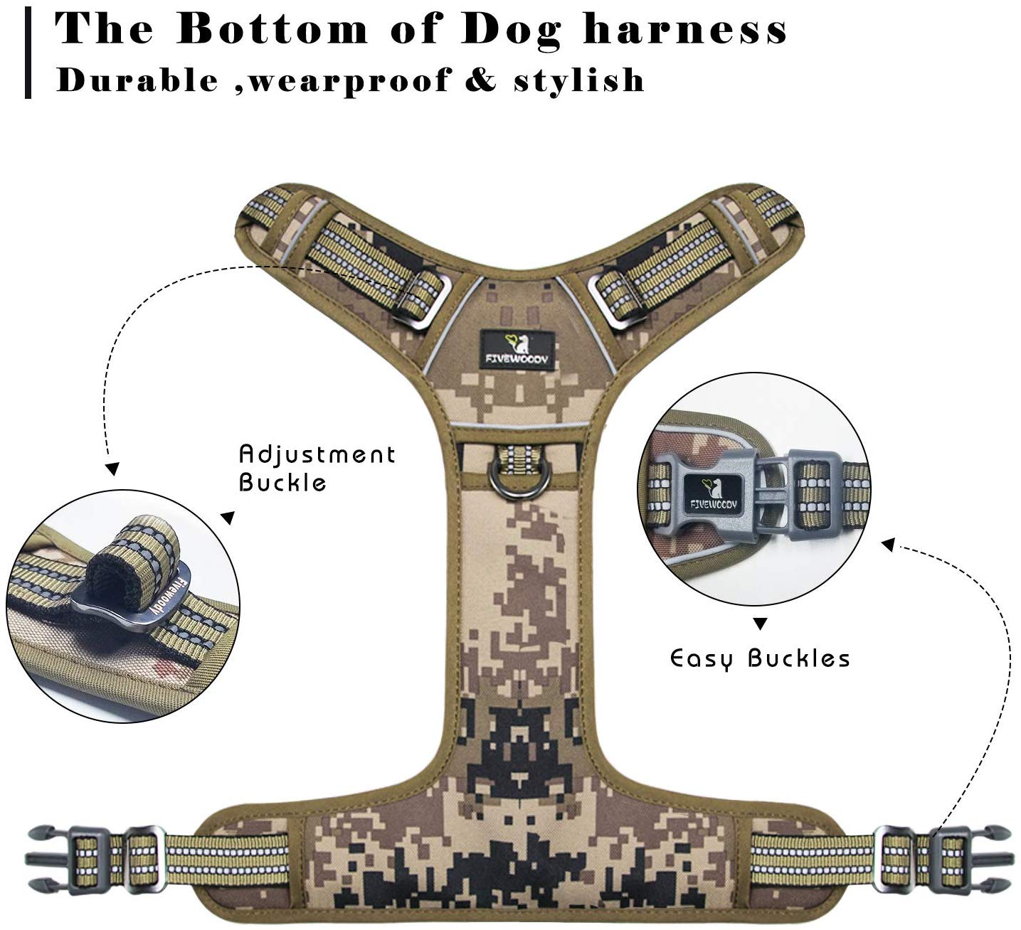 FIVEWOODY Dog Vest Harness is made from premium durable nylon oxford and soft padded material, very comfortable to put on and off.
