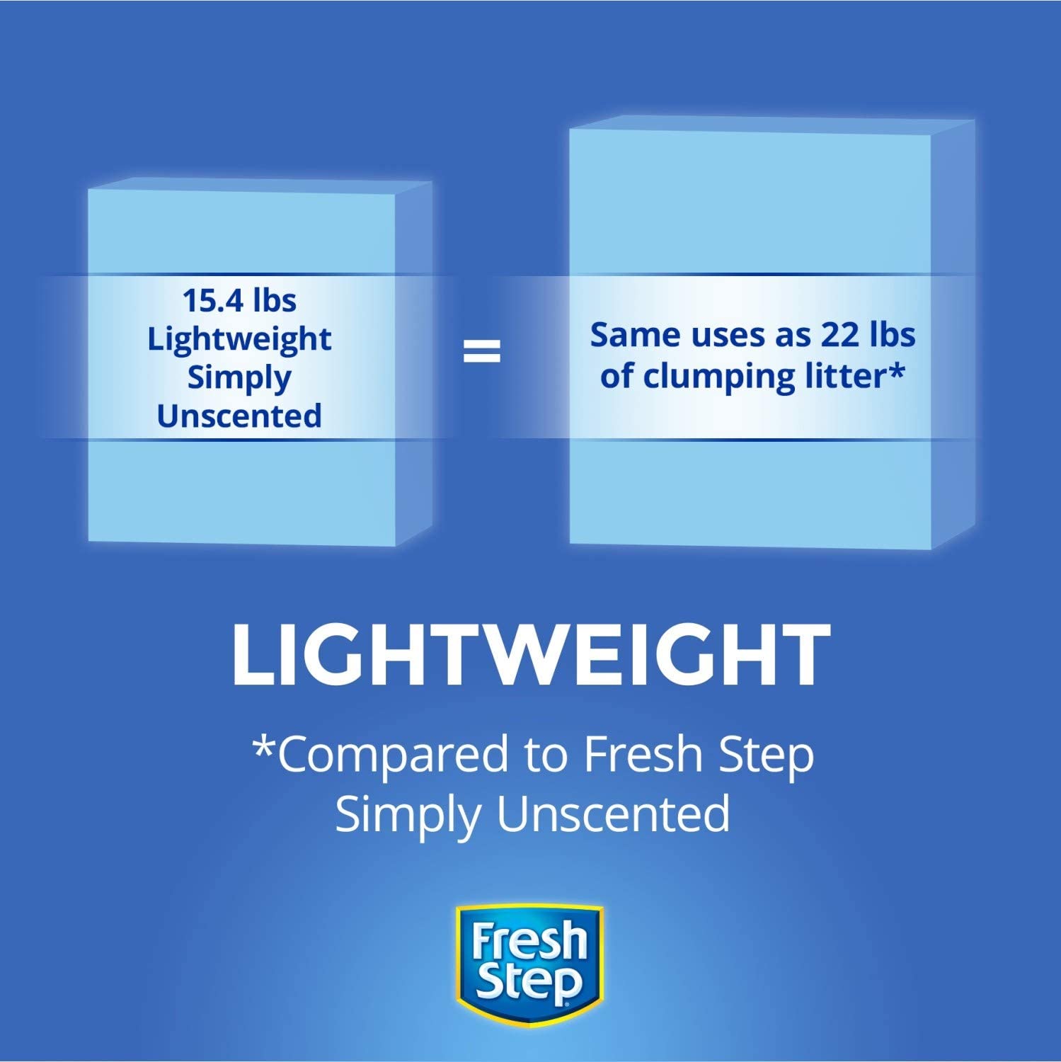 FRESH STEP LIGHTWEIGHT CAT LITTER: This unscented Fresh Step cat scoopable litter is created with your cat’s health and happiness in mind in a lightweight formula that’s easier to lift, pour, and store