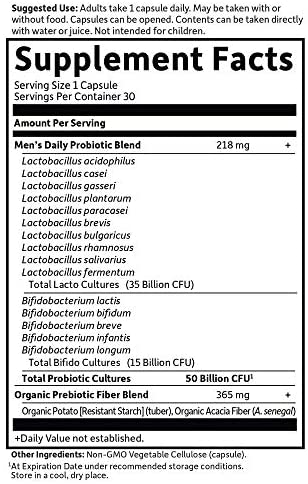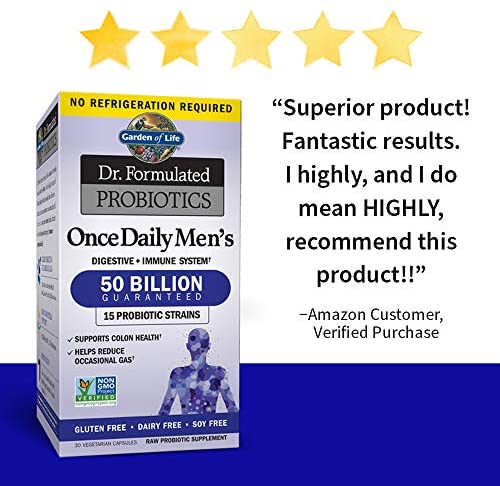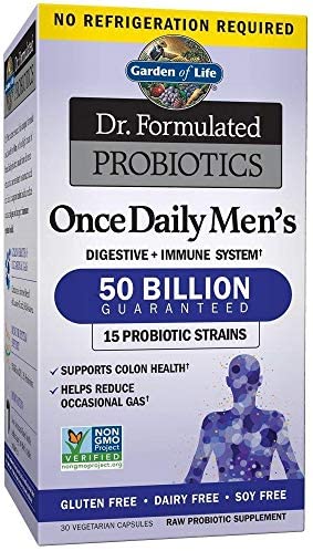 Garden of Life Dr. Formulated Probiotics for Men, Once Daily Men’s Probiotics + Prebiotic Fiber, 50 Billion CFU Guaranteed, Shelf Stable, Gluten Free One a Day, 30 Capsules *Packaging May Vary
