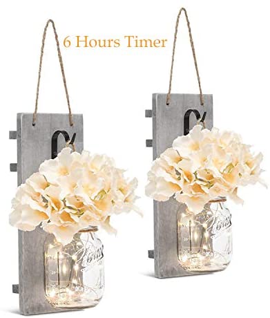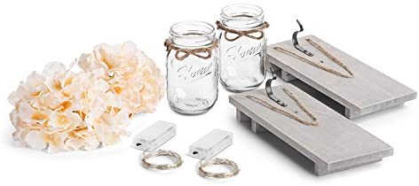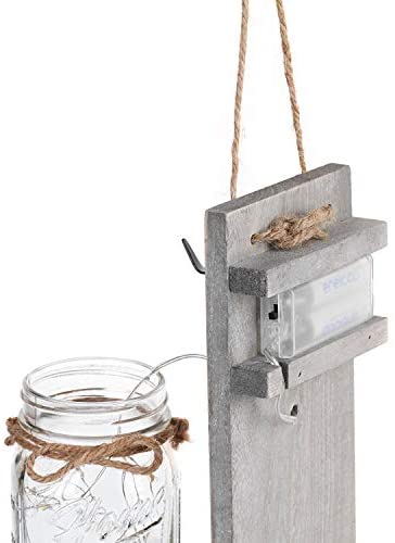 SPLENDID WITH QUALITY CRAFTSMANSHIP – Like all chen products, we use only the finest quality materials available. The hanging decoration includes: 2 mason jars with home , 2 reclaimed wood, 2 strips of LED lights (batteries not included), and 2 hydrangea flowers