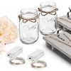 We complement these mason jar wall sconces with two white Hydrangea flowers and LED string fairy lights that give a peaceful illumination for your room. You can customize the jars with real flowers like lotus, roses, or jasmine, candles and much more.