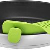 Designed spout to help remove excess water. Snaps onto nearly all size pots, pans and bowls, big and small. Attaches easily with two clips.