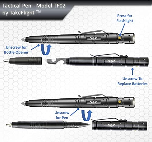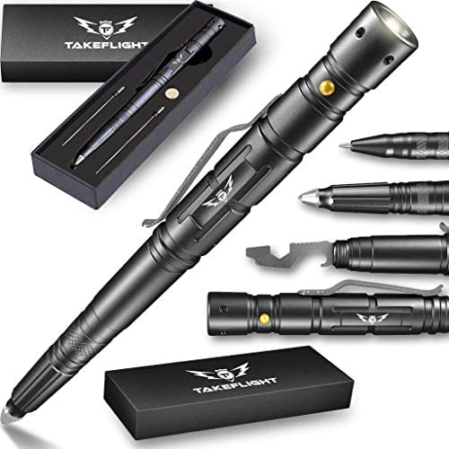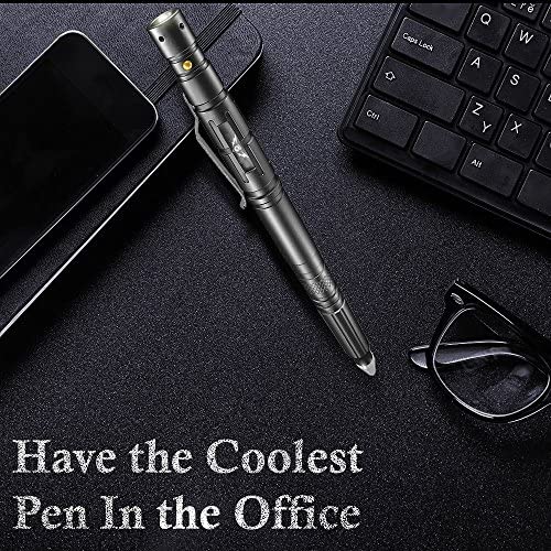 Tactical Pen for Self-Defense + LED Tactical Flashlight, Bottle Opener, Window Breaker | Multi-Tool for Everyday Carry (EDC) Survival Gear | For Military, Police, SWAT | Gift Boxed + Extra Ink